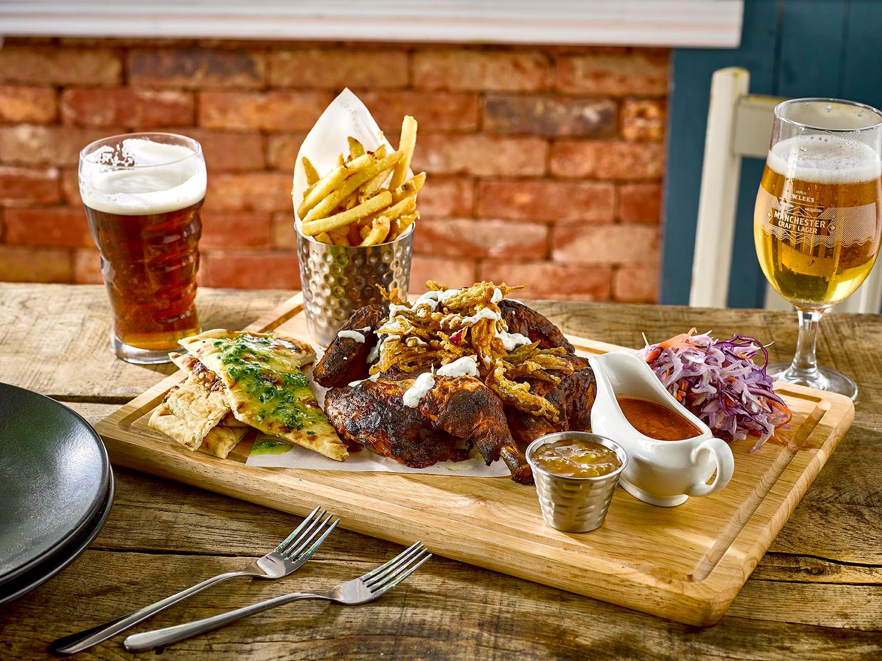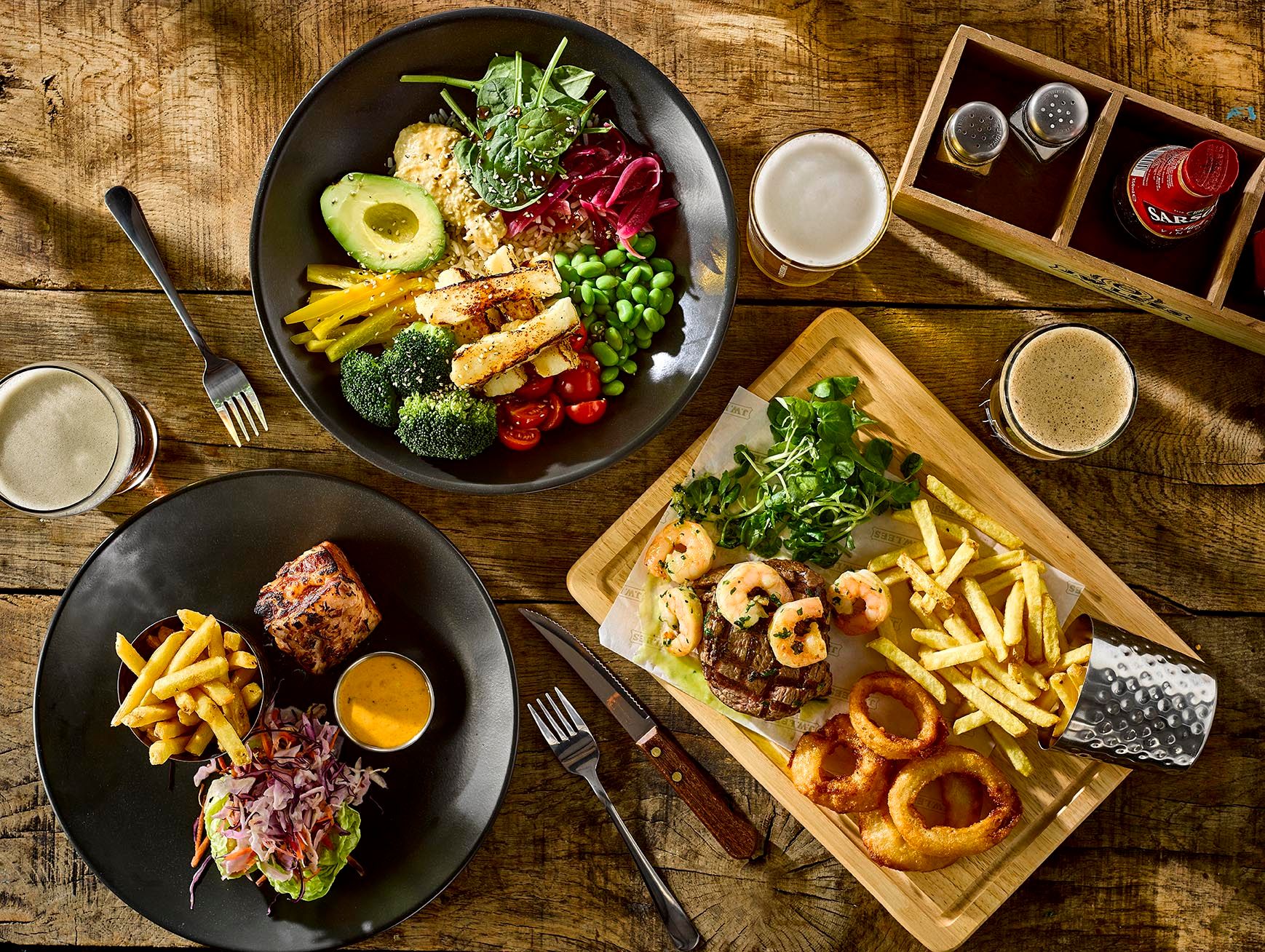 Pull up a chair with our new Spring menu in Sale. Enjoy delicious seasonal dishes, made for warm days and cold pints with friends and family. Perfect for pairing with our Manchester-made beers, our new menu includes fresh signature dishes, vibrant Nourish bowls, delicious sharing boards and more. Not forgetting your pub favourites like our legendary cheese & onion pie, MPA battered cod fillet and the iconic Brewery tower burger.